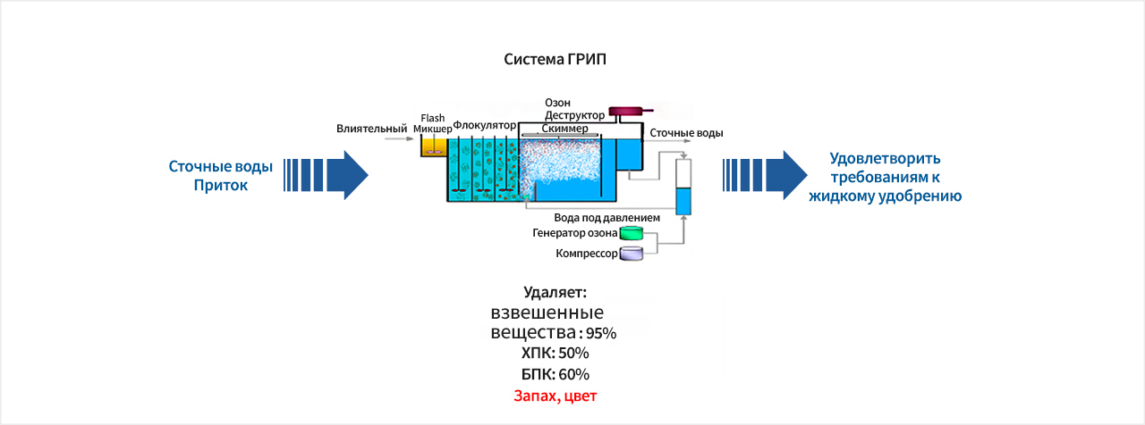 | Качество очищенного стока | Соответствует стандартам жидкого удобрения | Сброс в водоток |