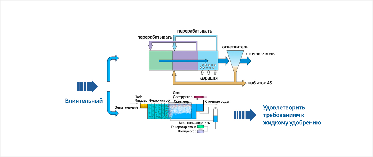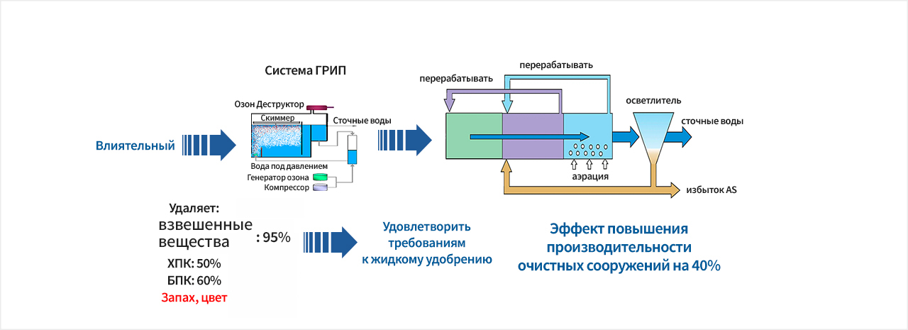 Технология DOF (Dissolved Ozone Flotation - Озоновая Напорная Флотация) вместе с биологической очисткой сточных вод