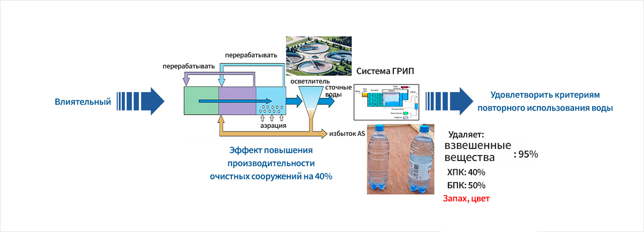 Для максимизации эффективности системы DOF ее можно использовать для предварительной очистки без добавления химикатов (вариант 3)), а также для последующей или глубокой очистки (вариант 2)), как показано на схеме выше. Использование двух систем DOF в одном процессе может сократить размер биологической системы примерно на 50%~60%, что позволяет снизить затраты на строительство очистных сооружений.